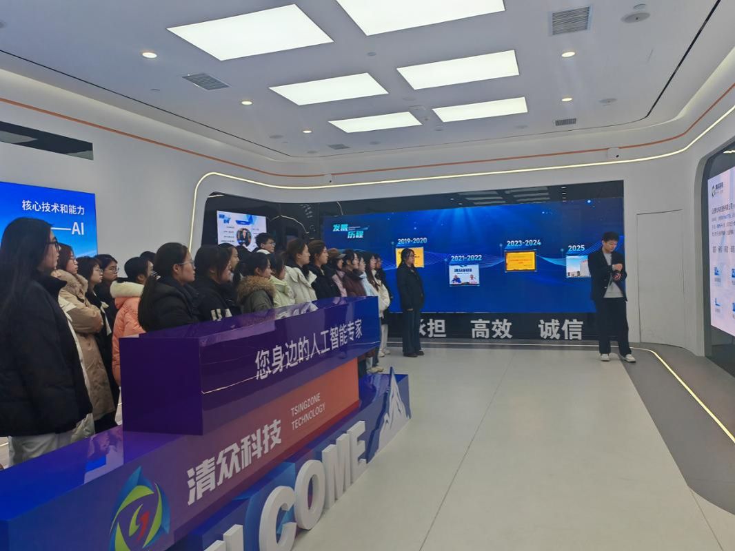 1月16日上午,统计学院参与实践的学生前往山西清众科技股份有限公司进行参观学习。在企业数字展厅,同学们通过大屏演示和典型案例讲解,系统了解了清众科技在政务数字化、能源数字化及信息安全等领域的技术成果与应用实践,切身感受到大数据与人工智能技术对传统产业转型升级的推动力量。参观结束后,企业举行了简短的开营仪式。清众科技股份有限公司常务副总经理、人工智能专家高志熙先生致辞,他鼓励同学们积极拥抱人工智能发展趋势,主动将理论知识与产业实践相结合,并表示公司高度重视与高校的合作,期待通过本次实训进一步促进校企双方在人才培养、项目共建等方面的深度协同。